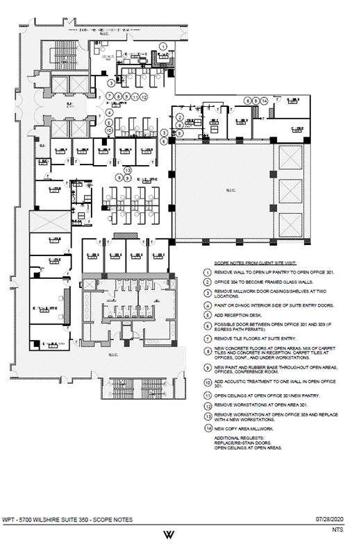 9. Landlord Work. Landlord shall perform Landlord Work, at Landlord’s sole cost and expense, (as outlined in Exhibit B of this Fourth Amendment) pursuant to a mutually agreed upon space plan incorporating mutually agreed upon Landlord building standard materials and specifications. Landlord and Tenant shall mutually agree on the date upon which Landlord shall commence the Landlord Work (the “Landlord Work Commencement Date”), which must commence prior to August 31, 2021. Landlord shall have one hundred and twenty (120) days to complete the Landlord Work from Landlord Work Commencement Date, subject to force majeure or any delays out of the Landlord’s reasonable control, including but not limited a Tenant Delay (as defined in Section 5 of Exhibit B) (the “Scheduled Completion Date”). In the event that the Landlord’s Work is not substantially completed by the date (the “Outside Completion Date”) that is thirty (30) days after the Scheduled Completion Date, then Tenant shall be entitled to a rent credit to be applied after the expiration of the Rent Abatement Period equal to one day’s Base Rent for each one day in the period from the Outside Completion Date until the date upon which the Landlord’s Work is substantially completed. Notwithstanding the foregoing, in the event any items in the Landlord’s Work or Lease which require Tenant’s consent, including but not limited to Change Orders and items considered a “Tenant Delay” (as defined in Exhibit B) and consent or direction from Tenant has not been approved by Tenant within 24 hours of Landlord request, and (ii) Tenant fails to relocate from the Premises within 24 hours of notice from Landlord as further outlined in Exhibit B and Section 8 (a), then, in such event, the Outside Completion Date shall be extended day for day for each 24 hours tenant fails to comply with (i) and (ii). For greater clarity, the construction schedule (the “Landlord Work Schedule”) will provide a timeline for commencement of Landlord Work and anticipated completion of Landlord Work. Landlord shall propose the estimated Landlord Work Schedule to Tenant within a commercially reasonable period of time after the full execution and delivery of this Fourth Amendment. Upon the Renewal Term Commencement Date, Landlord shall be responsible for compliance with all applicable laws, including but not limited to ADA, Title 24 and Title 8 (the “Laws”) regarding the exterior and common areas (including the common area restrooms) only to the extent modifications are a requirement of the City of Los Angeles. Landlord shall have the time permitted by the City of Los Angeles to perform such compliance work. Upon execution of this Fourth Amendment, Landlord may, if required apply for and obtain all permits relating to Landlord Work. In the event Tenant requests any changes to the approved construction drawings attached hereto as Exhibit B, Tenant shall be responsible for all costs associated with any changes, including but not limited to permit fees and construction costs as further detailed in Section 4.c of Exhibit B. Any changes shall be considered a Tenant Delay as further detailed in Exhibit B. Notwithstanding anything to the contrary in this Fourth Amendment or Exhibit B, Tenant shall at all times have the right to use up to five (5) exterior offices during the performance of Landlord’s Work. Landlord and Tenant shall cooperate reasonably as to which specific exterior offices may be used at any particular time so as to address Landlord’s reasonable requirements with respect to progress of the Landlord Work. Should Tenant fail to vacate a specific exterior office at an agreed to particular time, this shall constitute a Tenant Delay and completion of Landlord’s Work shall be pushed out in accordance with this Section 9.