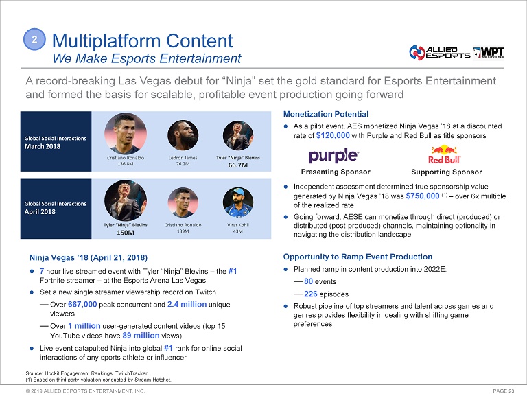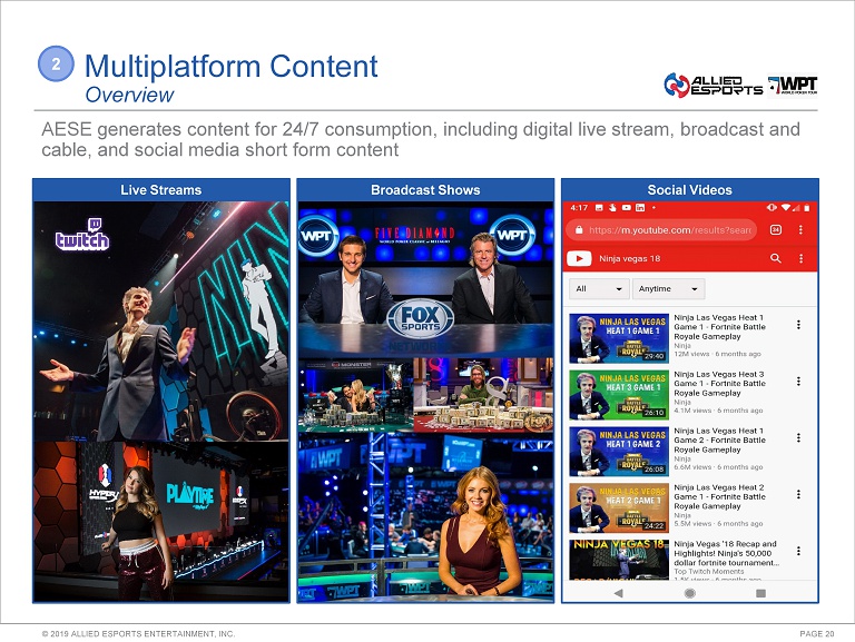 PAGE 22 © 2019 ALLIED ESPORTS ENTERTAINMENT, INC. Multiplatform Content We Make Esports Entertainment 2